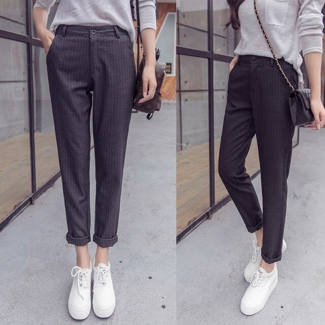 《入荷待ち》パンツ クロップドパンツ スラックス ストライプ グレー ブラック 大きいサイズ 大人可愛い シンプル