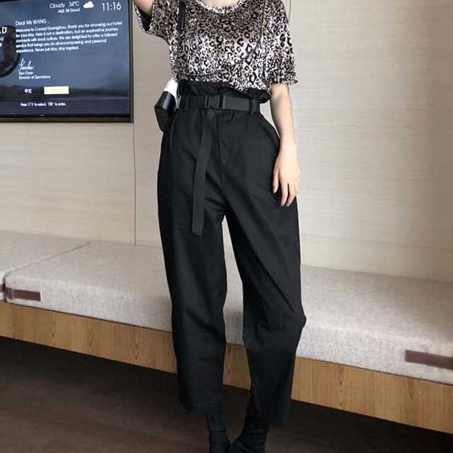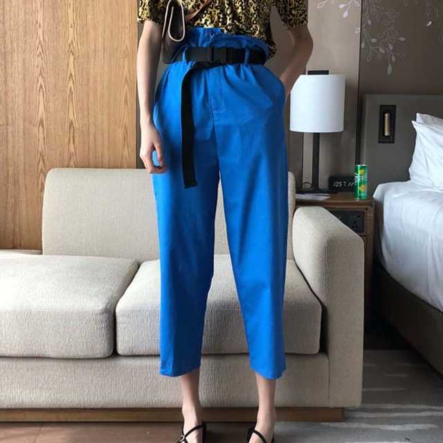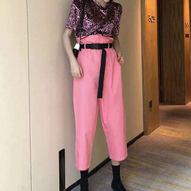 《入荷待ち》パンツ クロップドパンツ ベルト付き ブラック ピンク ブルー カジュアル 個性的