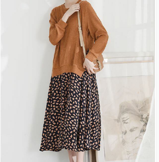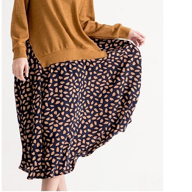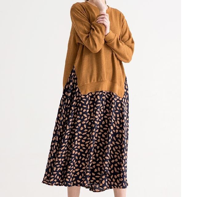 《入荷待ち》ニットレイヤード レオパード風 異素材MIX ワンピース お出掛け 旅行 リゾート デート