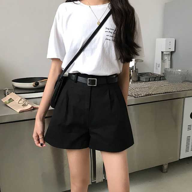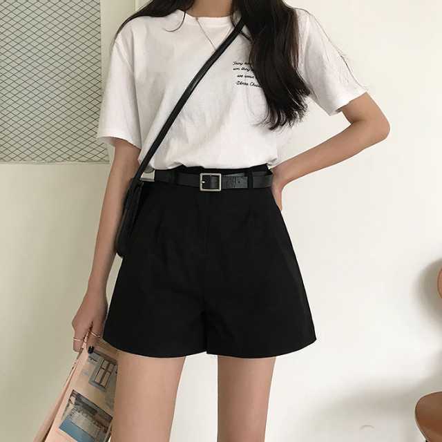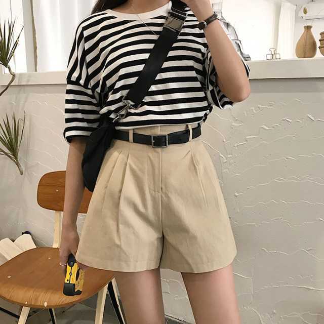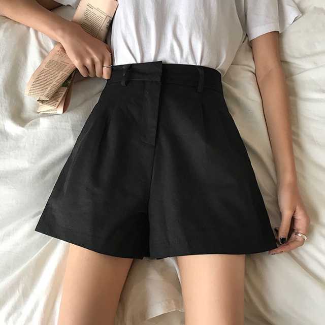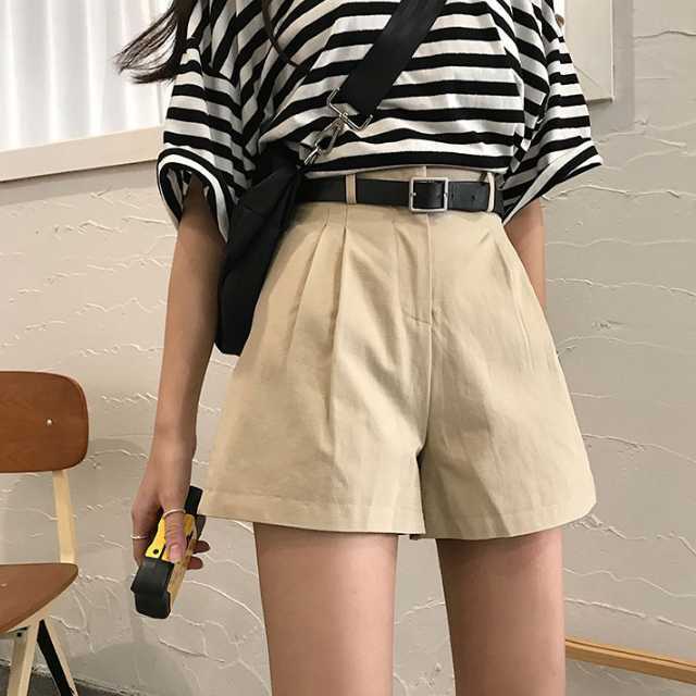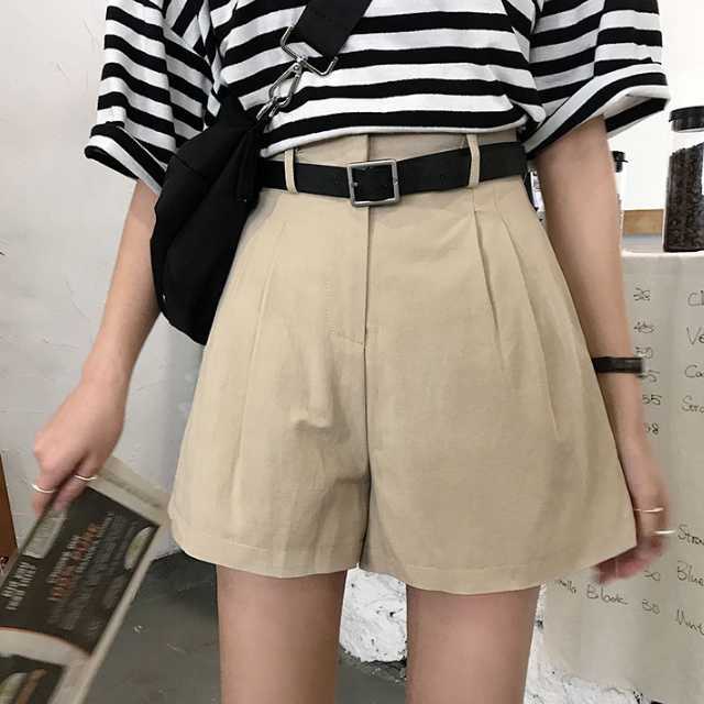 《入荷待ち》パンツ ショートパンツ ハイウエスト ベージュ ブラック カジュアル 大人可愛い シンプル