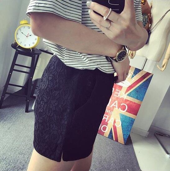 定番のショートパンツを、レースとワッフル生地で大人可愛く仕上げました♪