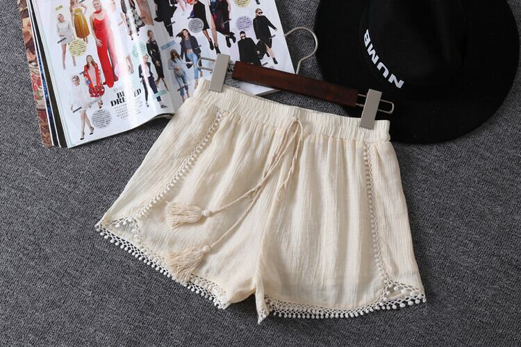 《入荷待ち》パンツ ショートパンツ レース シフォン ドロスト ベージュ ブラック ホワイト 大人可愛い ガーリー