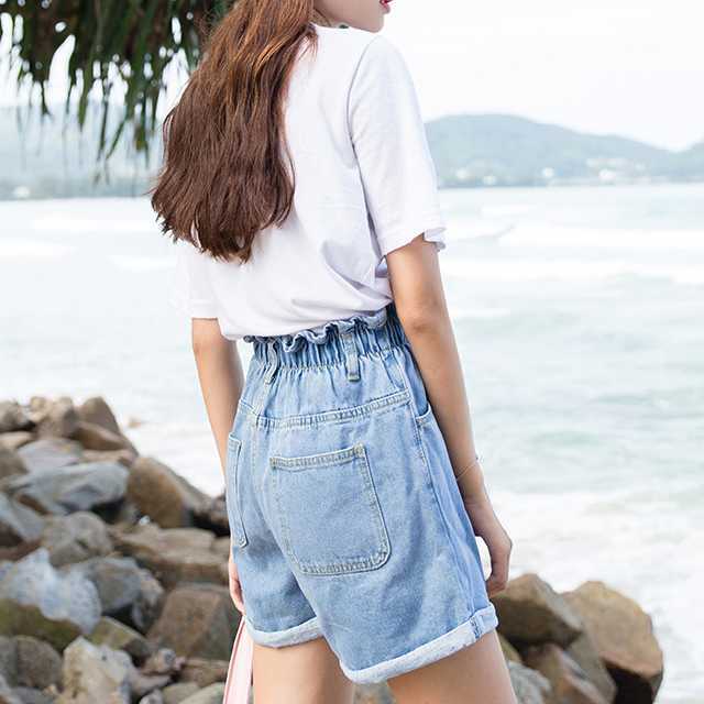 《入荷待ち》パンツ ショートパンツ デニム ウエストゴム ライトブルー ブラック 大人可愛い カジュアル