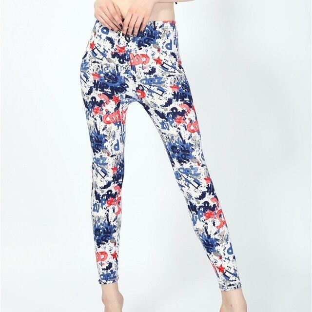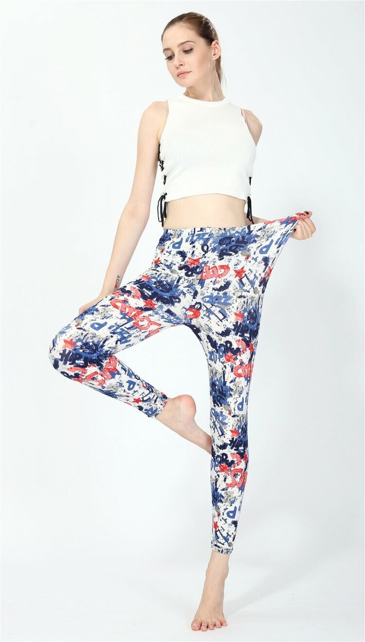 《入荷待ち》パンツ レギンス プリント 9分丈 ブルー ブラック カジュアル スポーティ