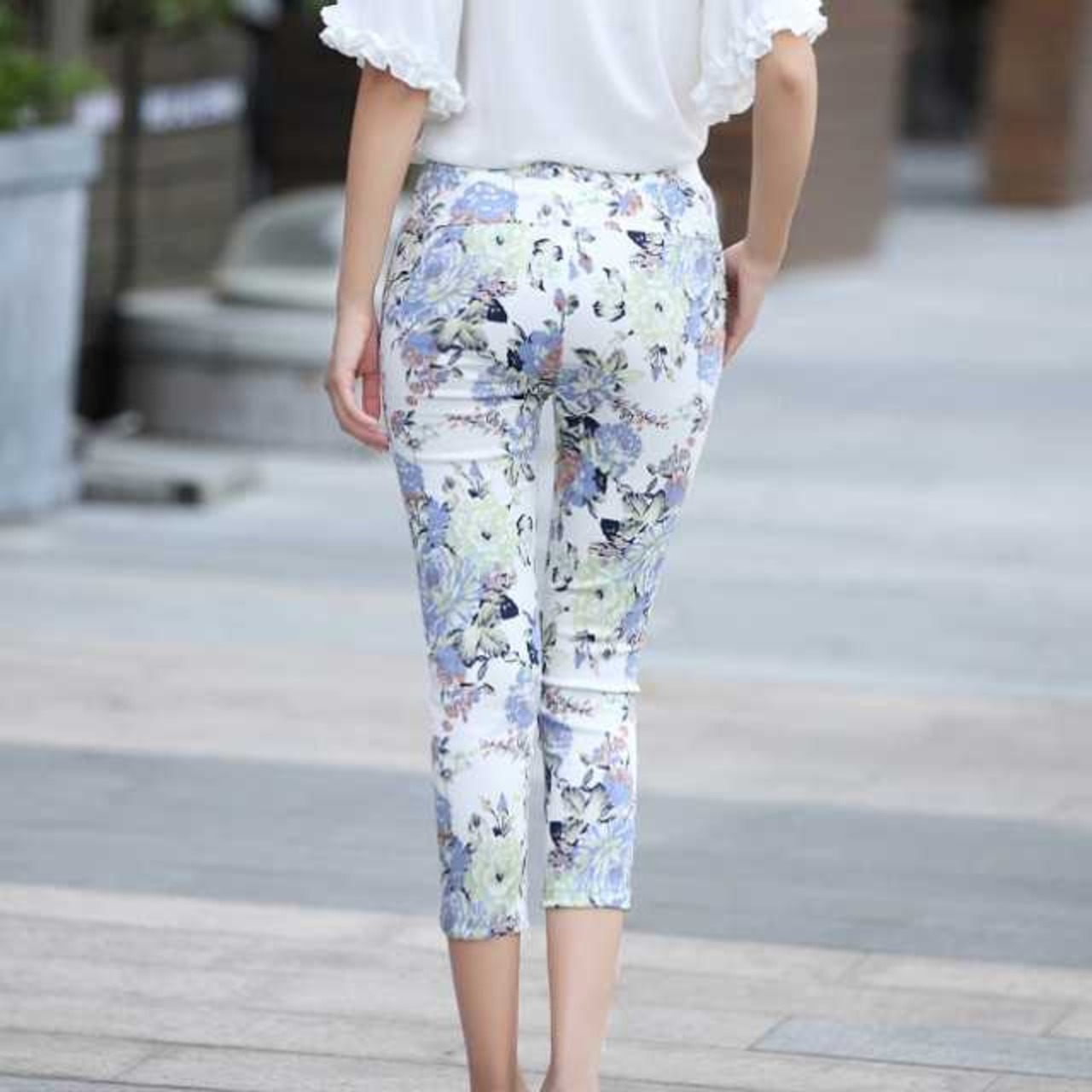 《入荷待ち》パンツ クロップドパンツ 花柄 ブルー ピンク 小さいサイズ 大きいサイズ 大人可愛い フェミニン