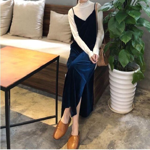《入荷待ち》マキシ丈 スリット キャミソールワンピース お出掛け 旅行 リゾート デート シンプル モード