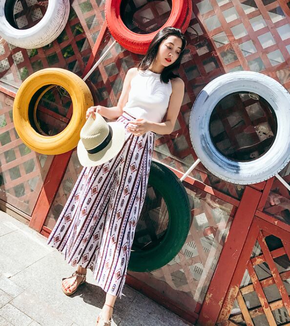 《入荷待ち》パンツ シフォン ワイドパンツ ストライプ カジュアル ホワイト 大きいサイズ リゾート ビーチ