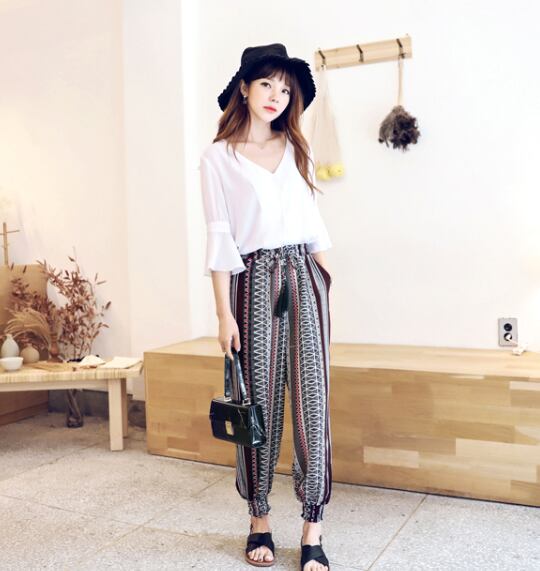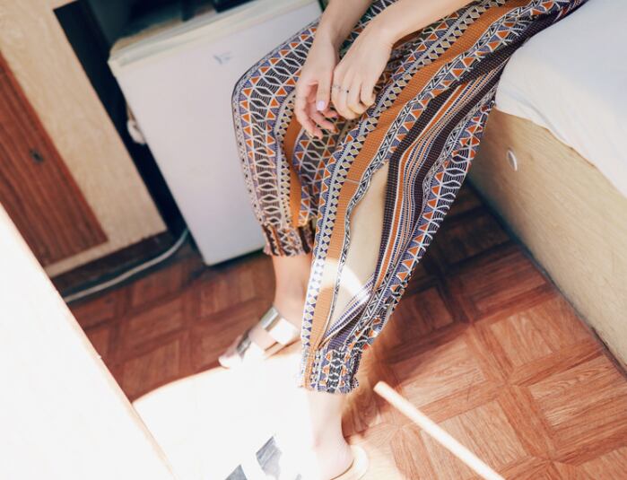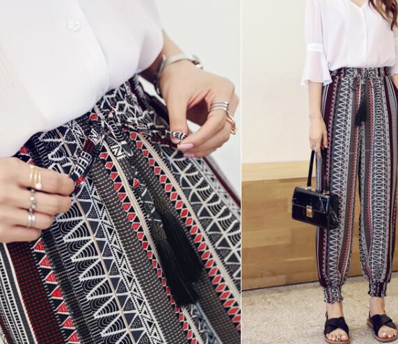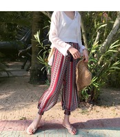 レトロさが可愛い、エスニック風デザインのパンツ。