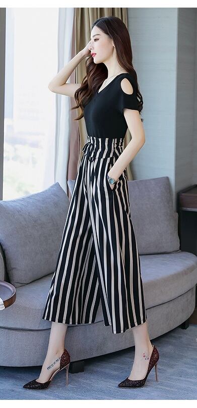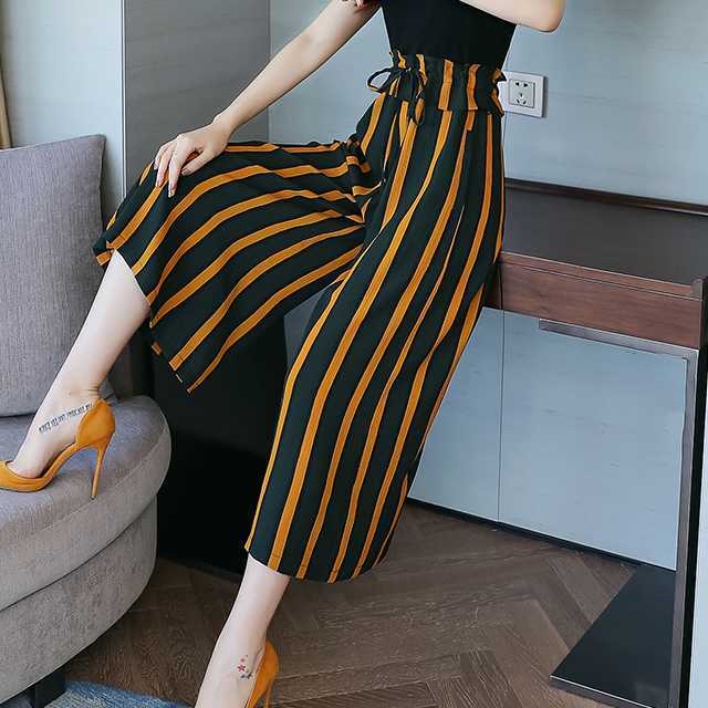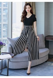 パンツ部分はストライプで脚のラインがすっきりして見えます。