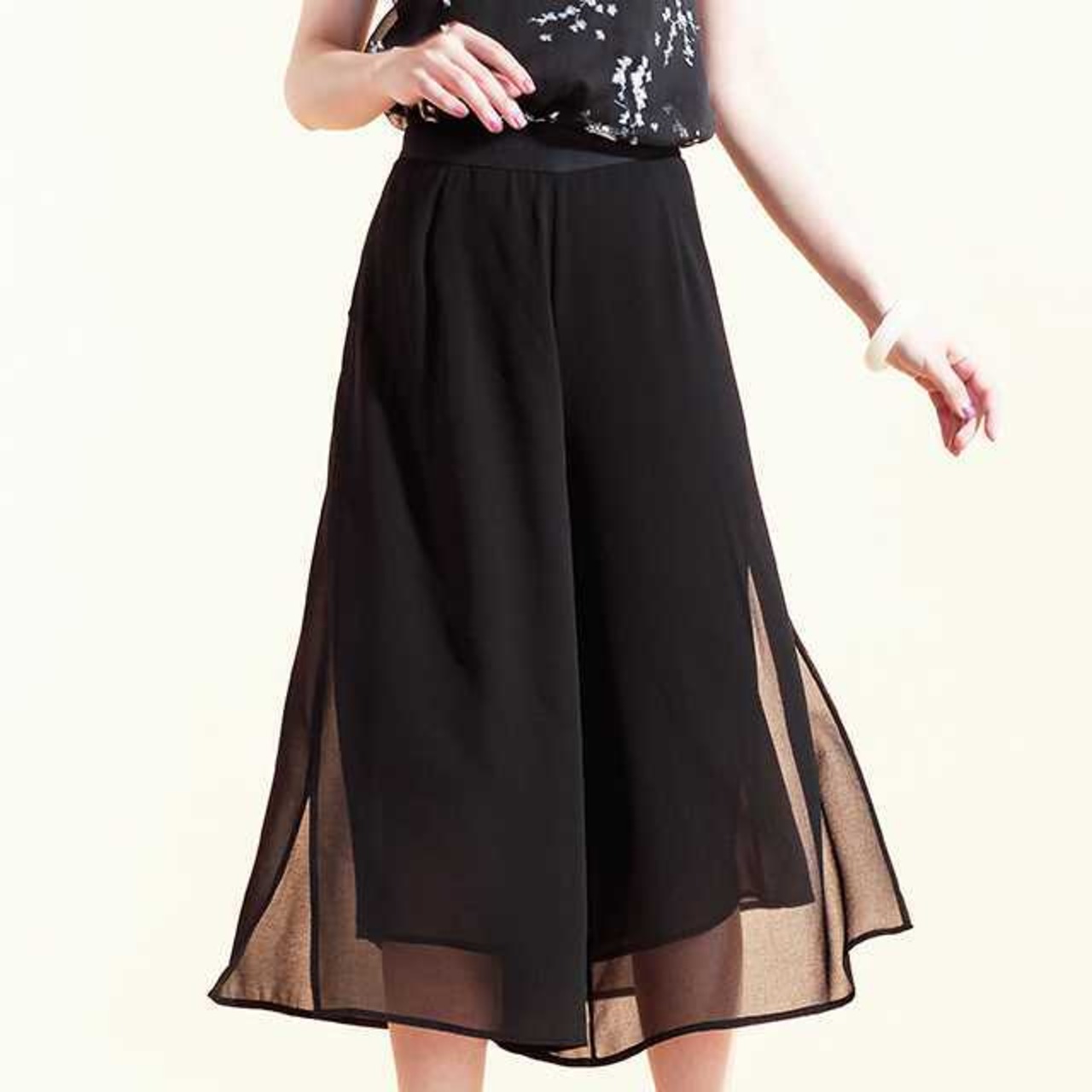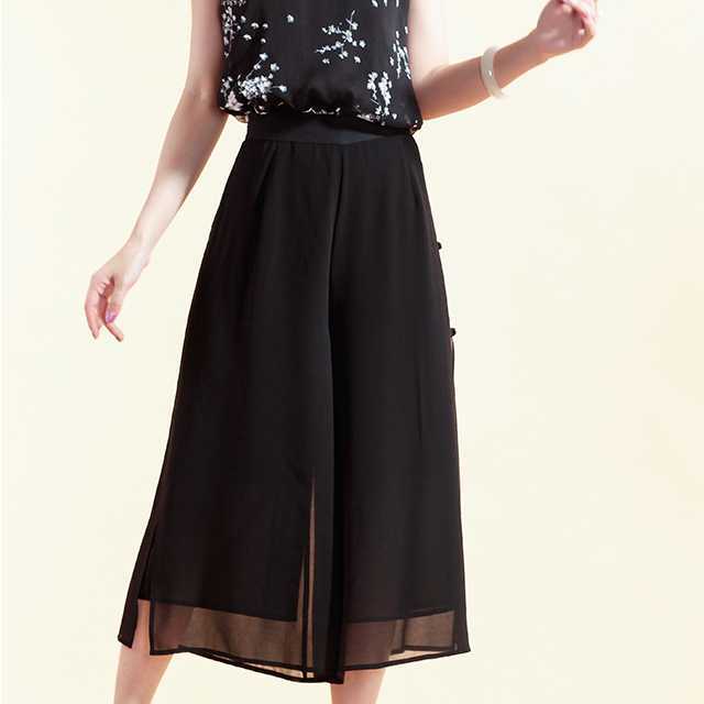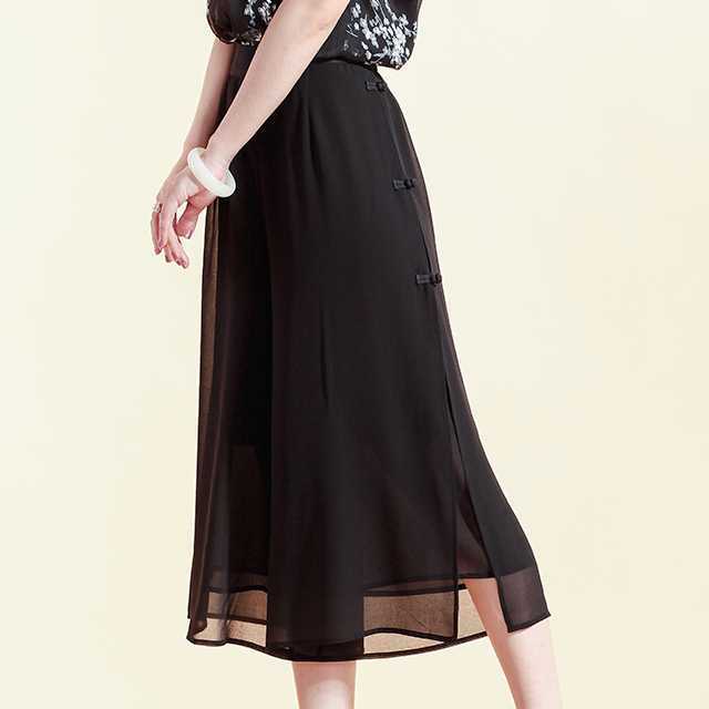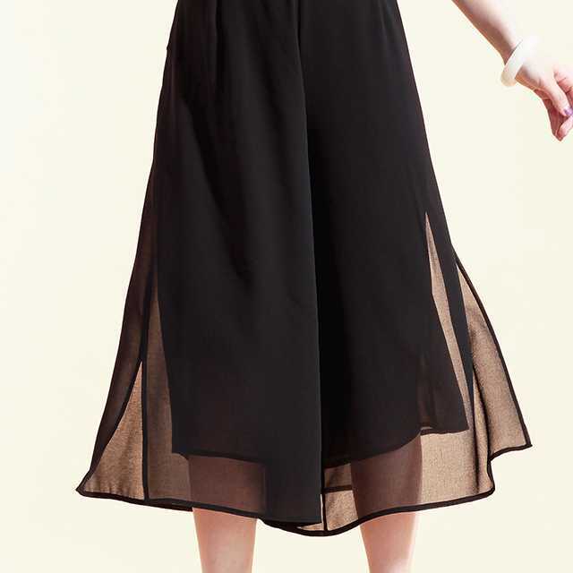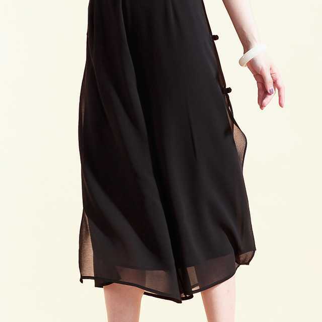 《入荷待ち》パンツ ワイドパンツ チュール チャイナボタン ブラック 大きいサイズ シンプル きれいめ