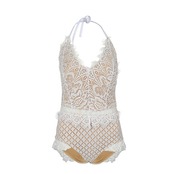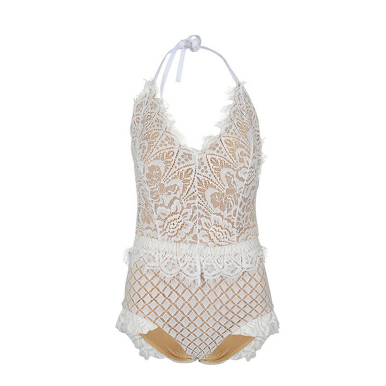 大きいサイズ ワンピース水着 おしゃれ スイムウエア オールインワン 体型カバー 総レース セクシー ホルターネック フリル バックオープン