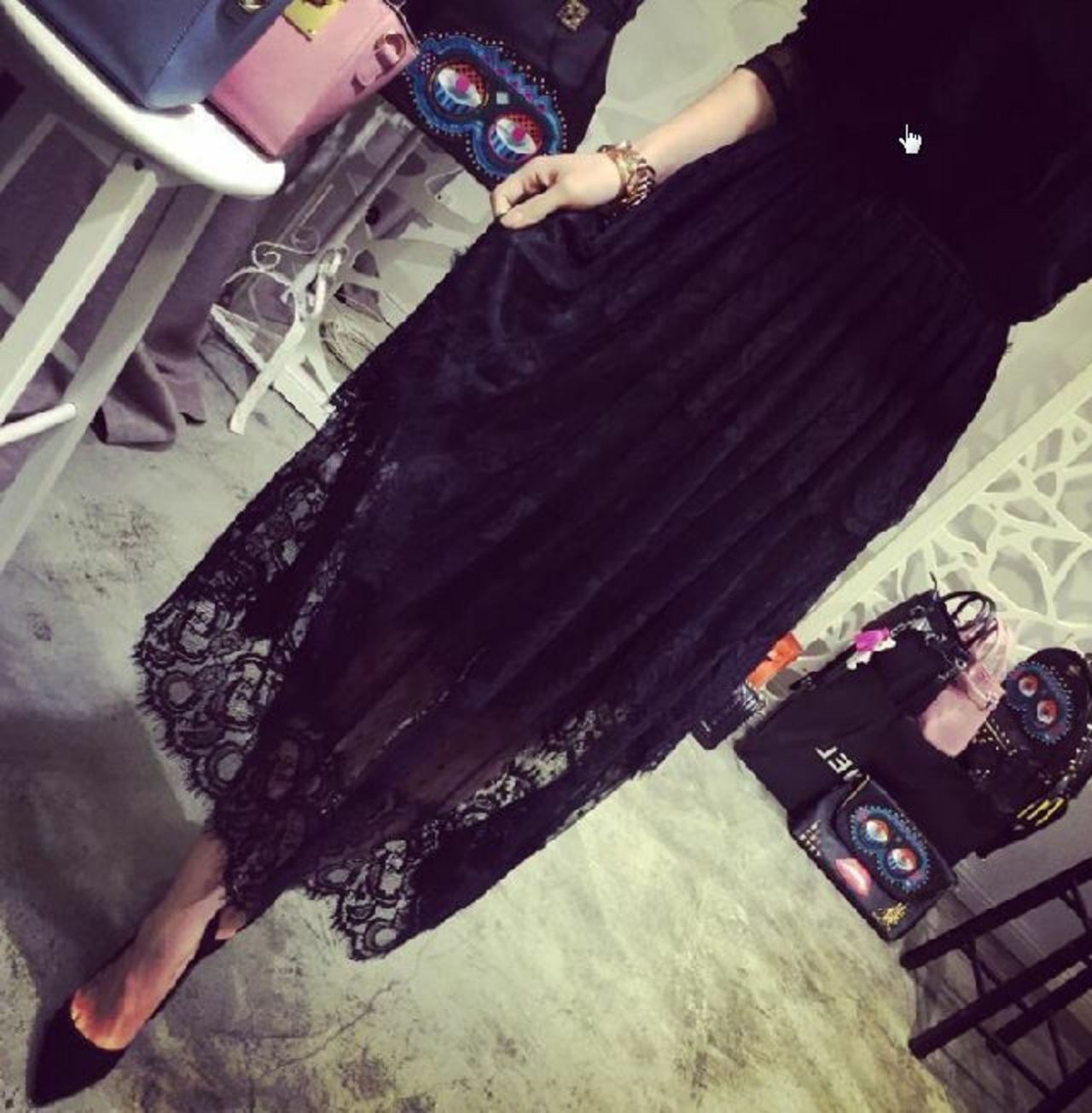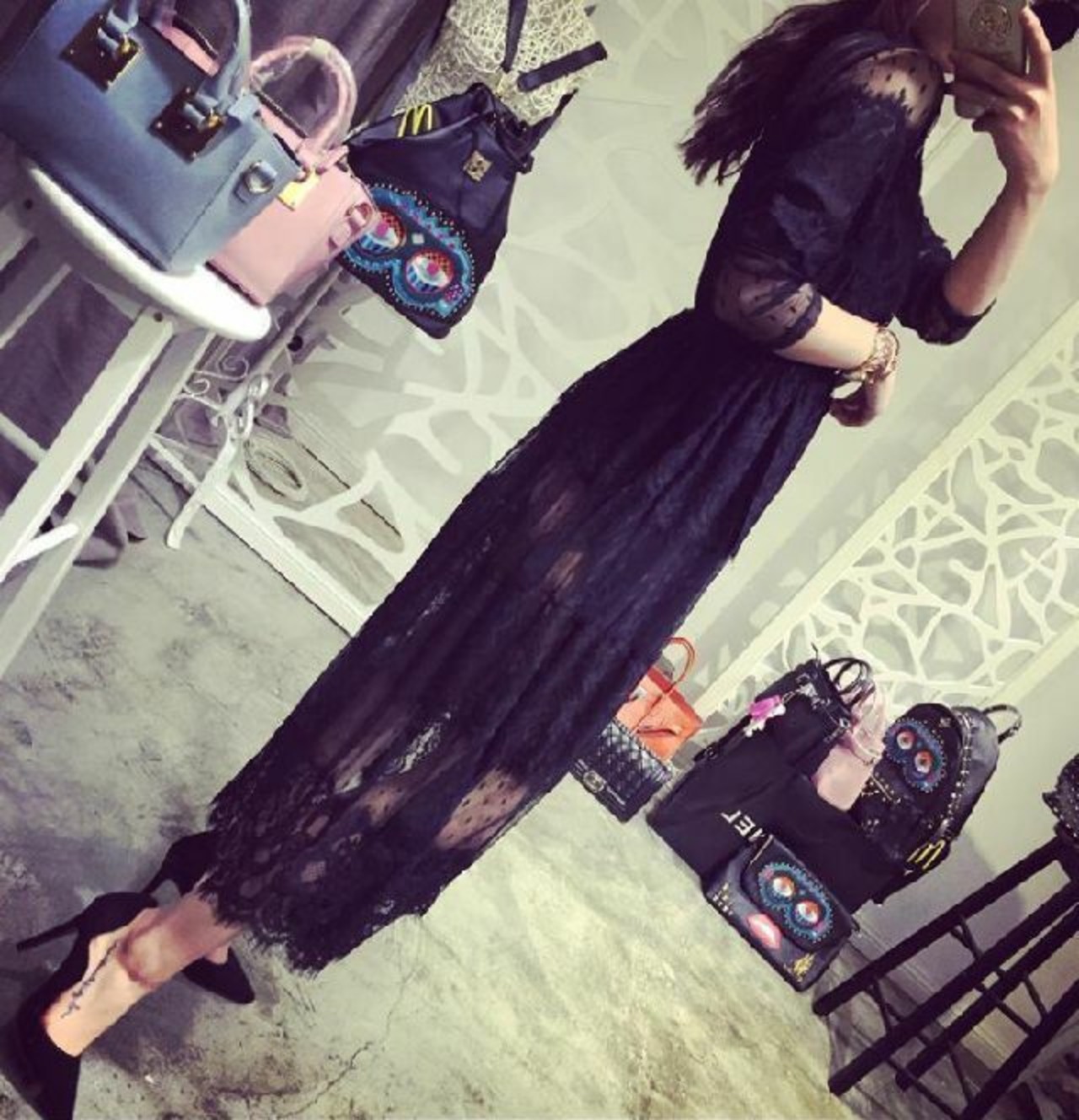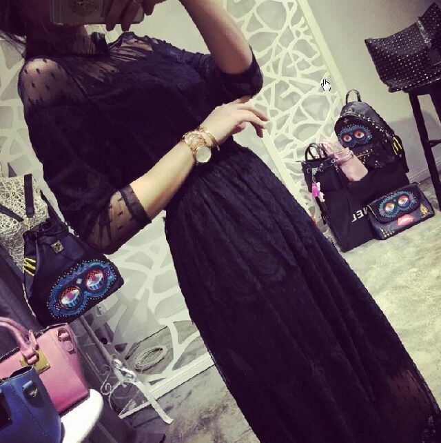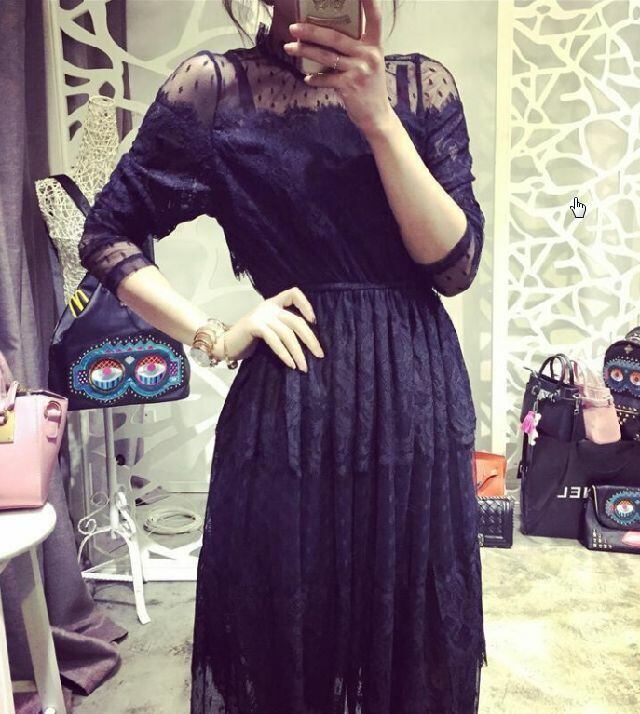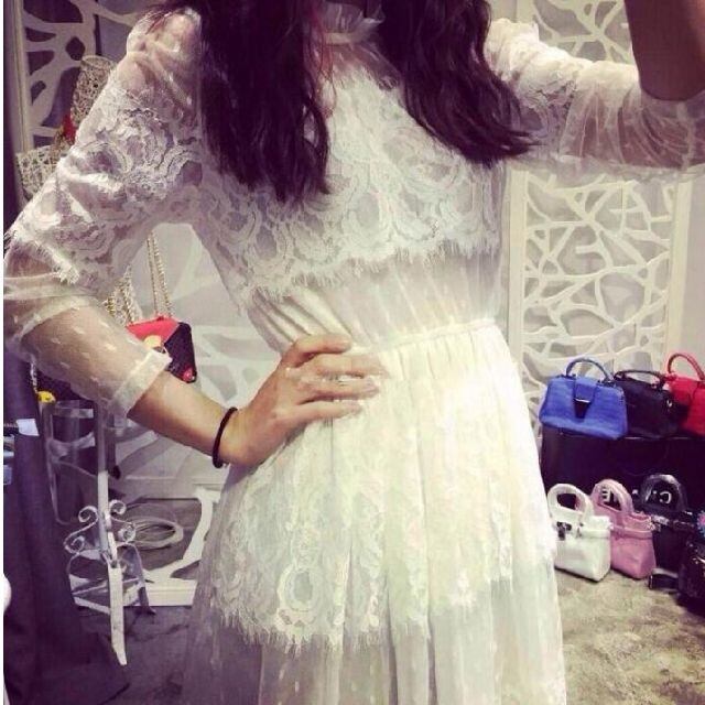 《入荷待ち》ワンピース 長袖 マキシ丈 メッシュ シースルー 透け感 レース ウエストマーク 華やか ガーリー 結婚式 二次会