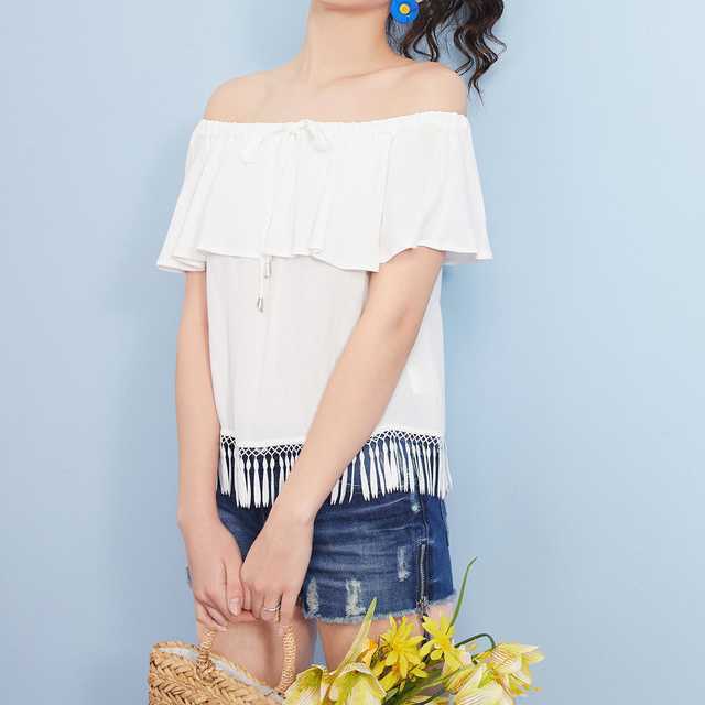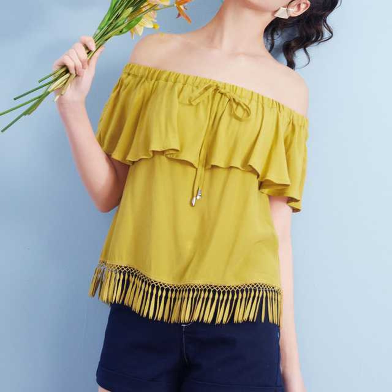 《入荷待ち》トップス オフショルカットソー フリンジ ホワイト イエロー 大人可愛い フェミニン 春 夏