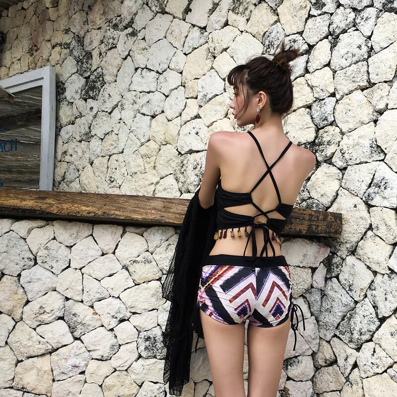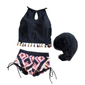《入荷待ち》水着 ビキニ フリンジ タッセル アジアン スリーピース 3点セット 体型カバー 日焼け対策 UV対策 大人可愛い オシャレ 夏 スイムウェア