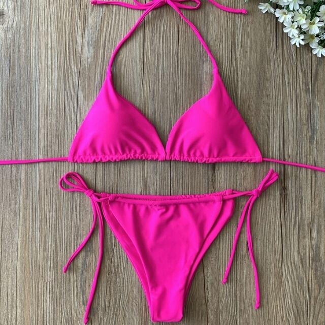 ビキニ 水着 スイムウェア ホルターネック リボン セクシー 定番 ベーシック トライアングルビキニ 無地 シンプル