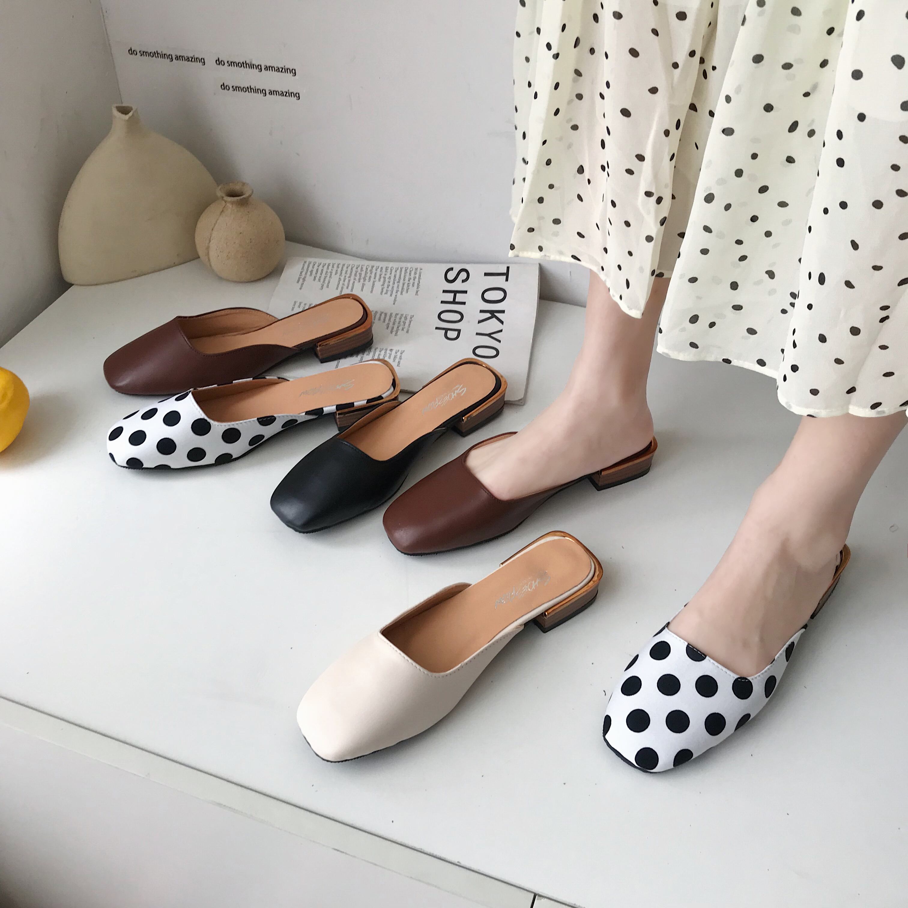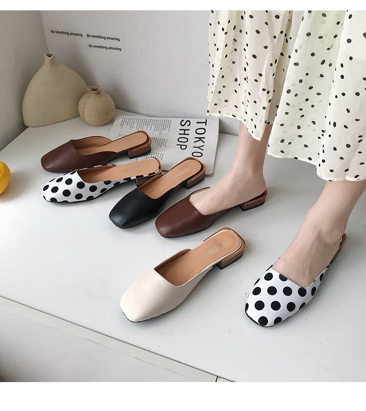 《入荷待ち》フラットシューズ サンダル レディース ホワイトドット ブラックドット ローヒール
