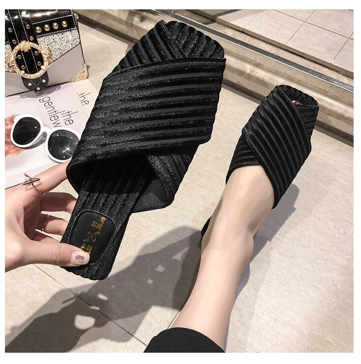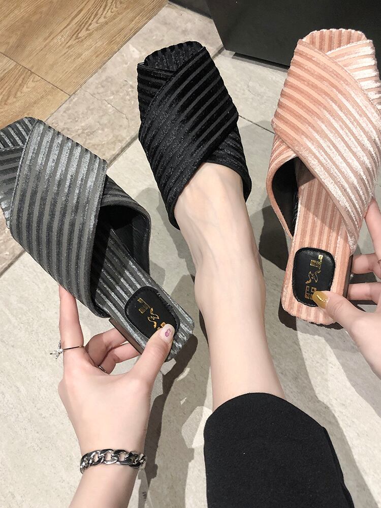 《再入荷》サンダル シューズ ローヒール シンプル 平底 ブラック グレー グリーン ピンク