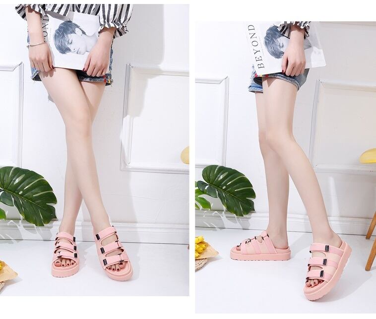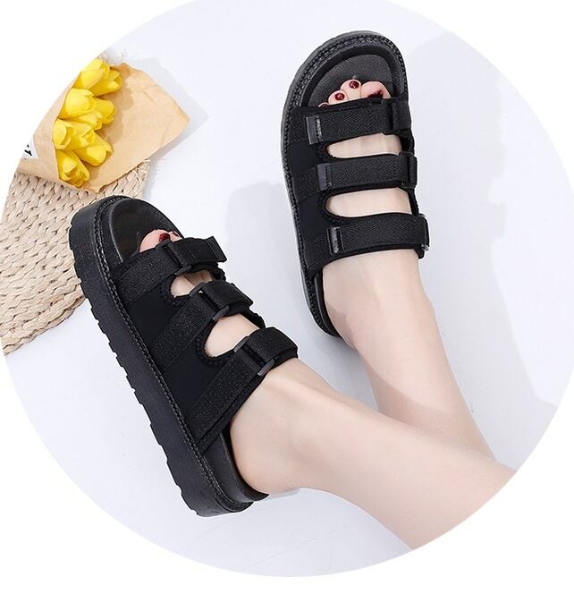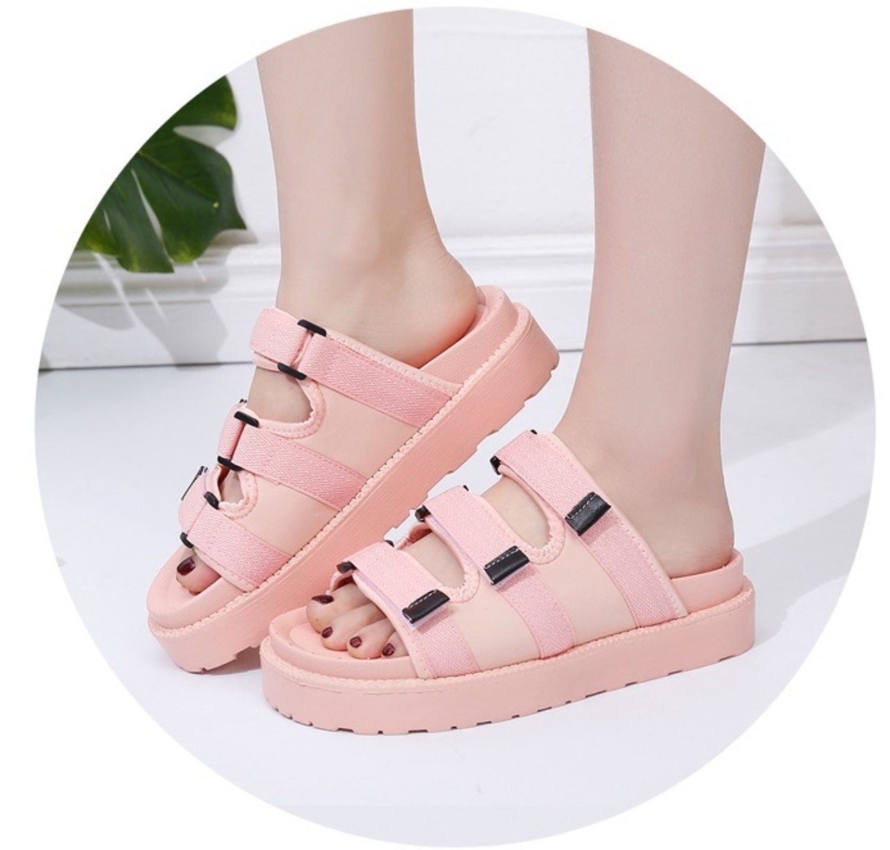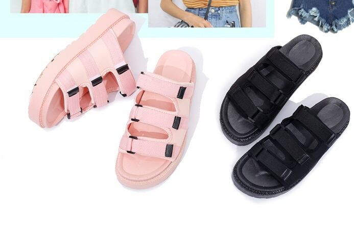 《入荷待ち》サンダル レディース ファッション フラット ミドルヒール 無地 ブラック ピンク スポーティー