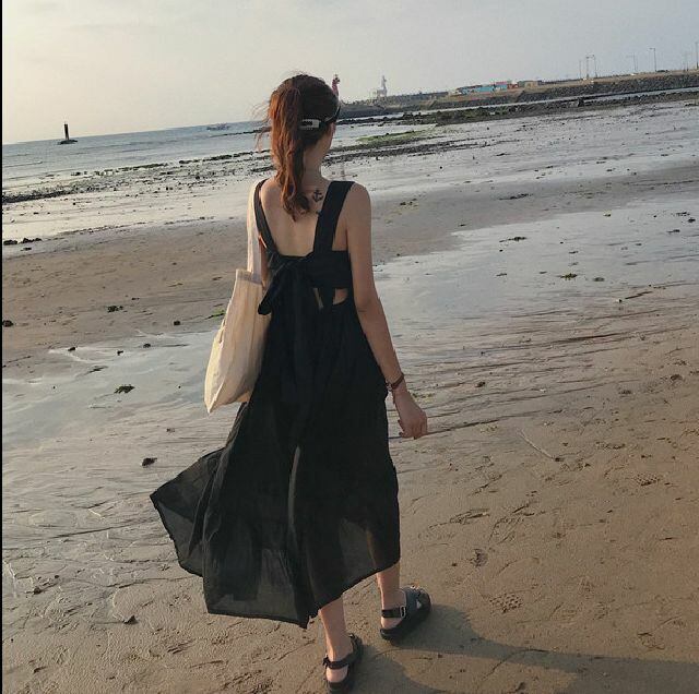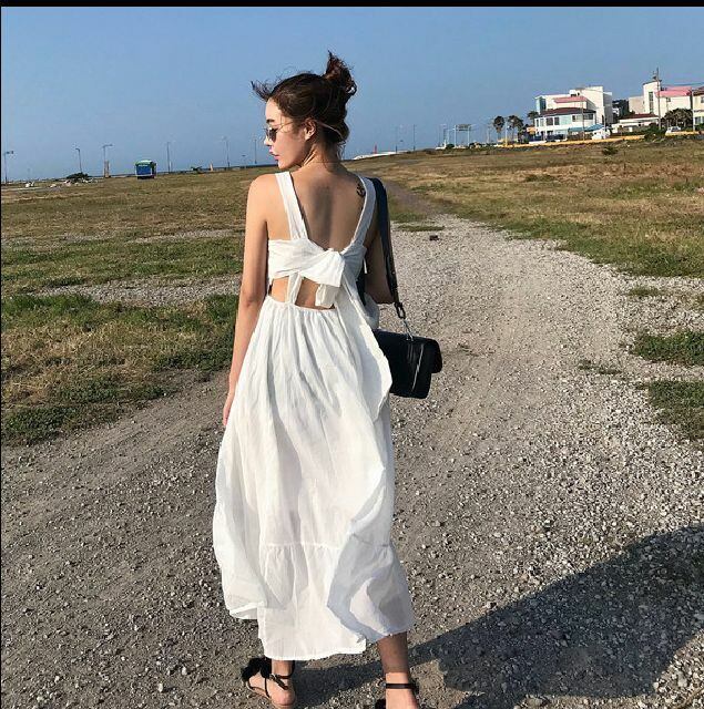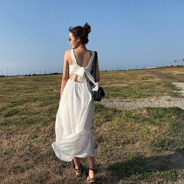 《入荷待ち》バックコンシャス 後ろリボン ノースリーブ コットンワンピース お出掛け 旅行 リゾート デート