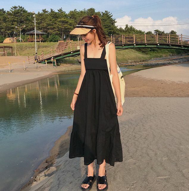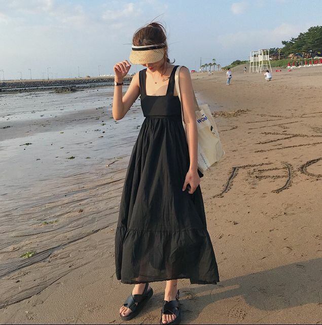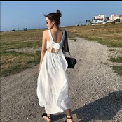 バックコンシャスなノースリーブマキシ丈ワンピース