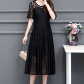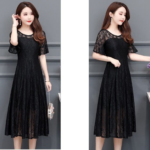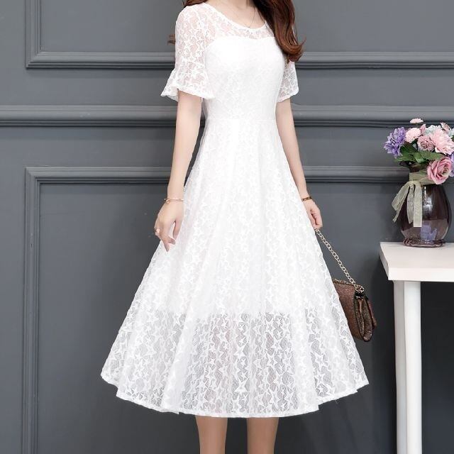 《入荷待ち》 星柄 レース フェミニン ミモレ丈 お呼ばれ ワンピース お出掛け 旅行 リゾート デート