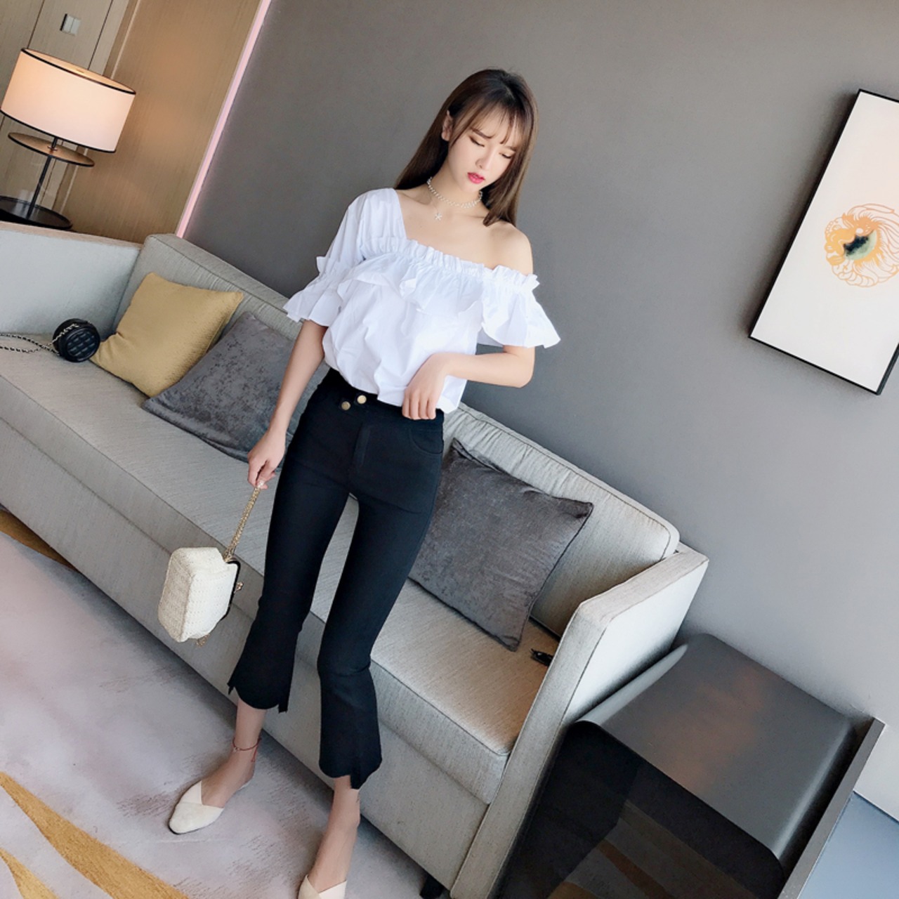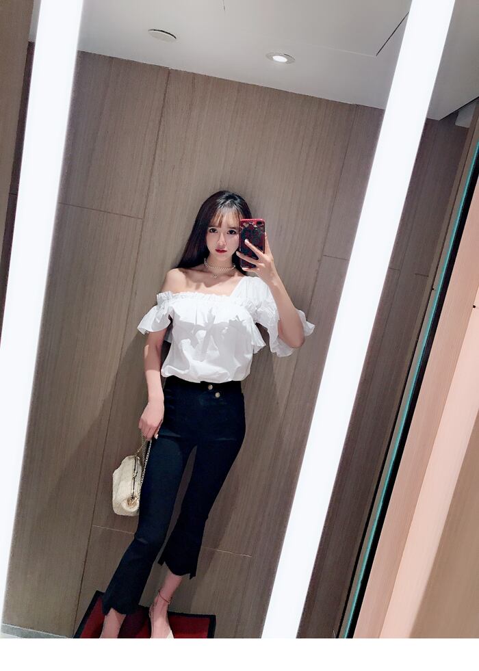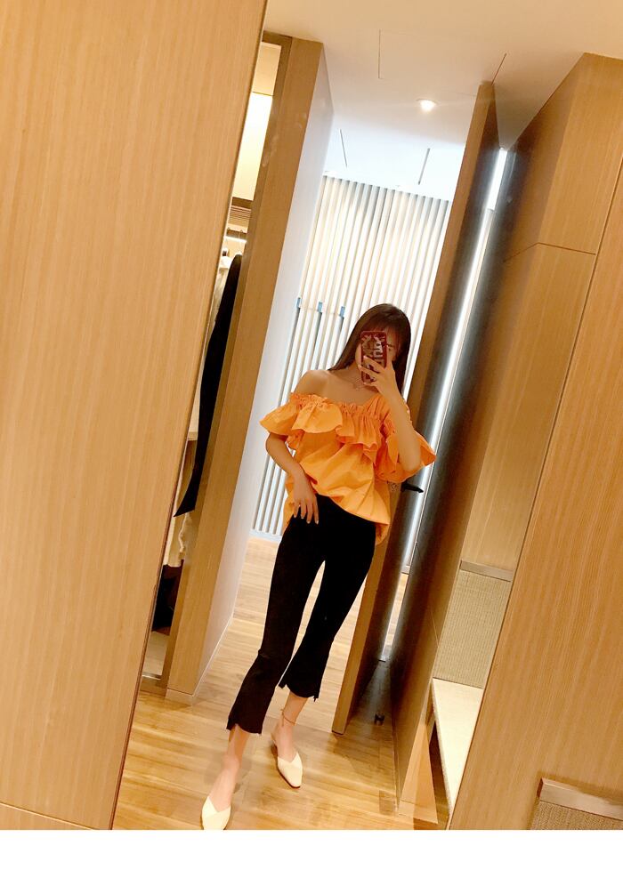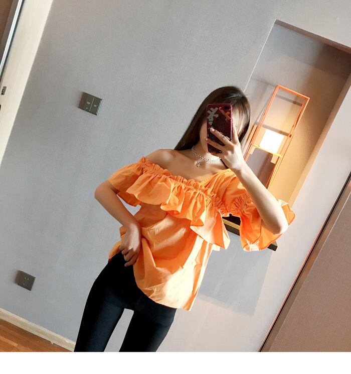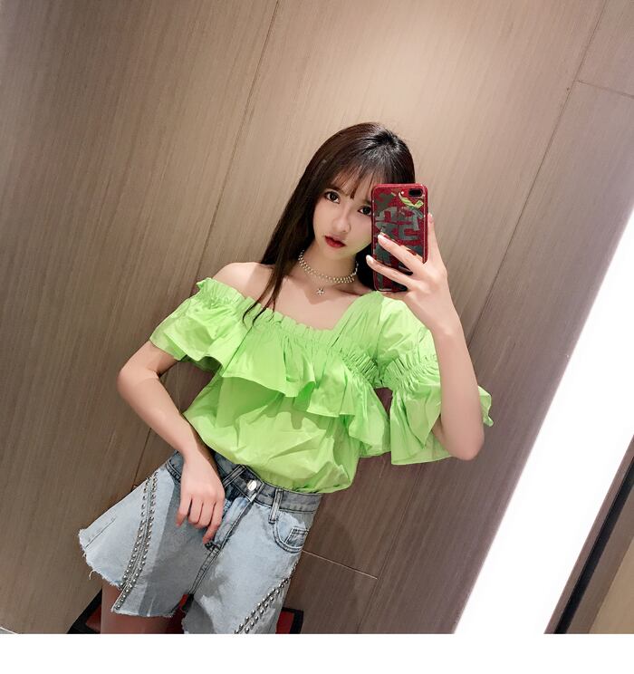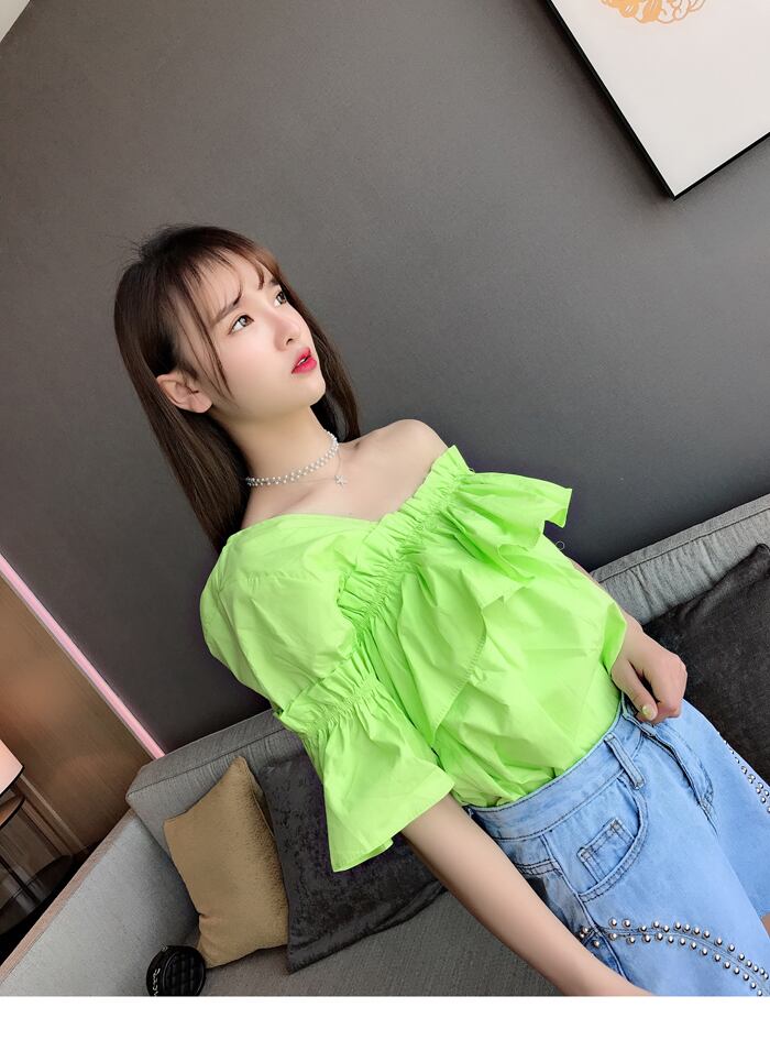 《入荷待ち》ネオン トレンド トップス ショルダーカット ワンショルダー フリル フェミニン グリーン オレンジ ホワイト 女子会 デート