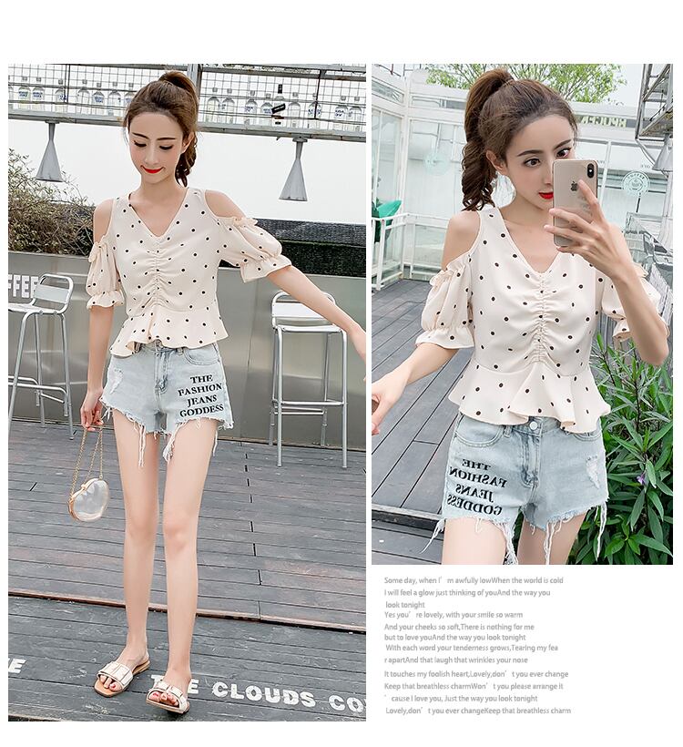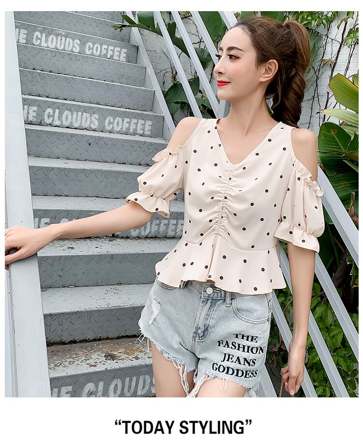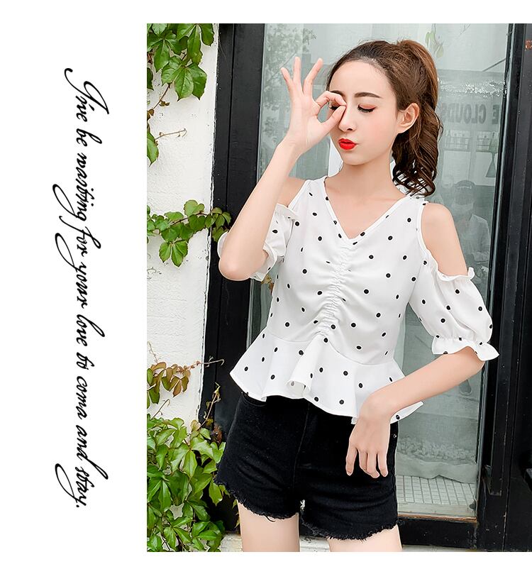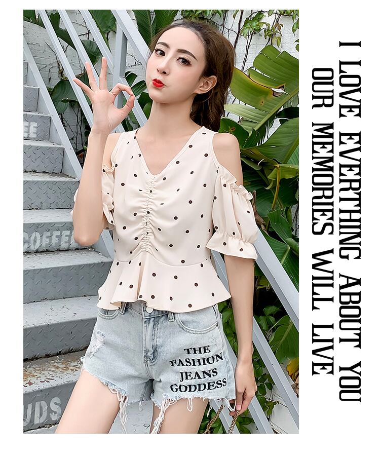 《入荷待ち》トップス オープンショルダー ショルダーカット Vネック フリル ドット 女子会 デート ショート丈