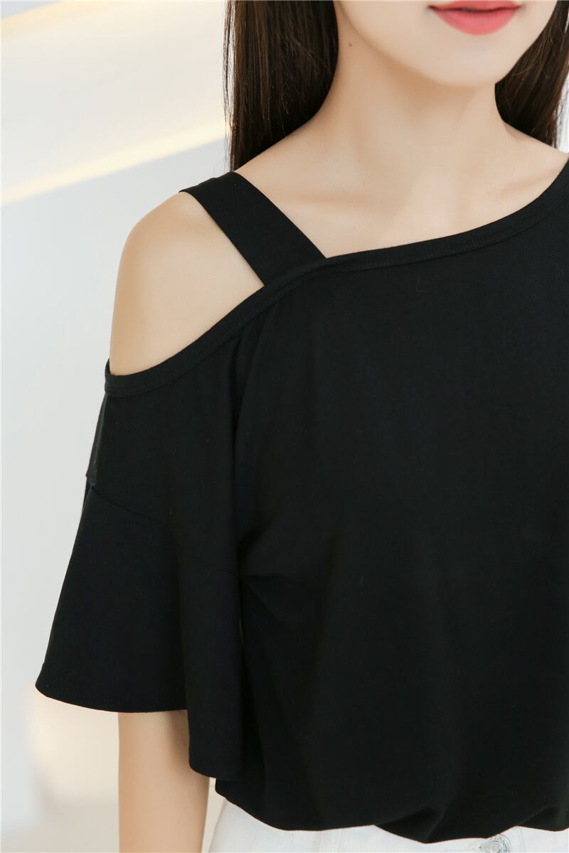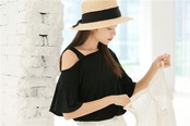 《入荷待ち》トップス オープンショルダー ワンショルダー フリル ベルスリーブ ホワイト ブラック 女子会 デート
