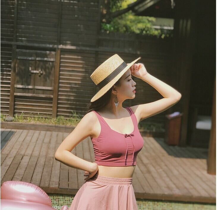 水着 ビキニ レトロ ガーリー キュート 大人可愛い リボン 3点セット スリーピース ハイウエストボトム 体型カバー 海 ビーチ リゾート プール