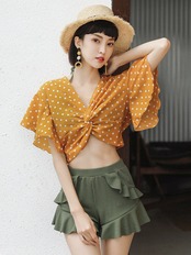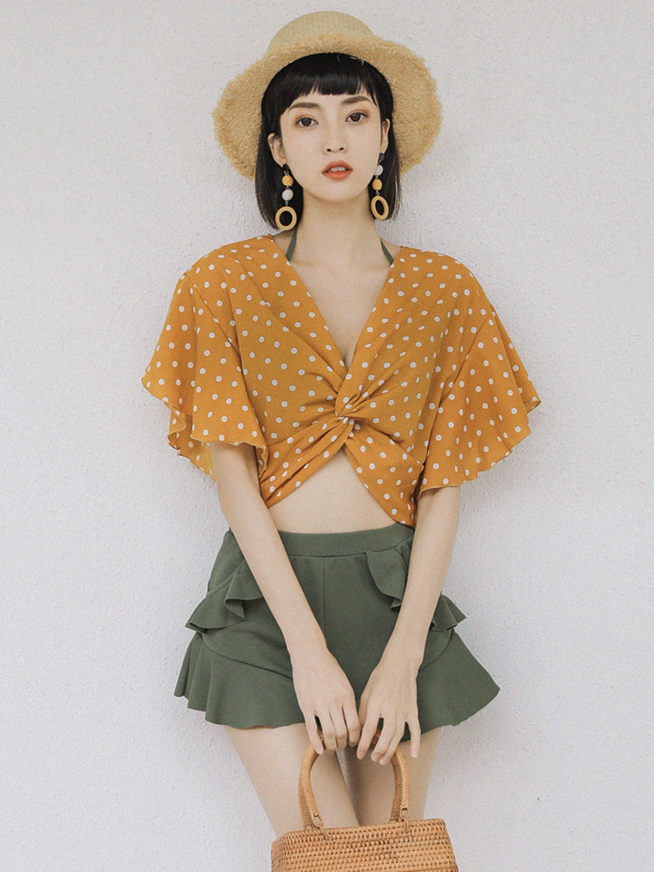 《入荷待ち》水着 ビキニ 3点セット スリーピース 大人可愛い レトロ フリル リボン ホルターネック 体型カバー 夏 スイムウェア 海 ビーチ リゾート プール 水玉 ドット