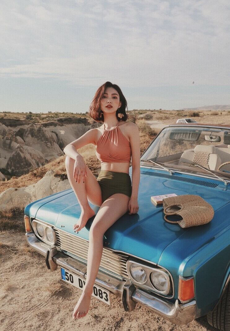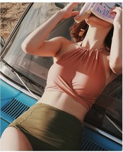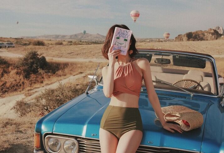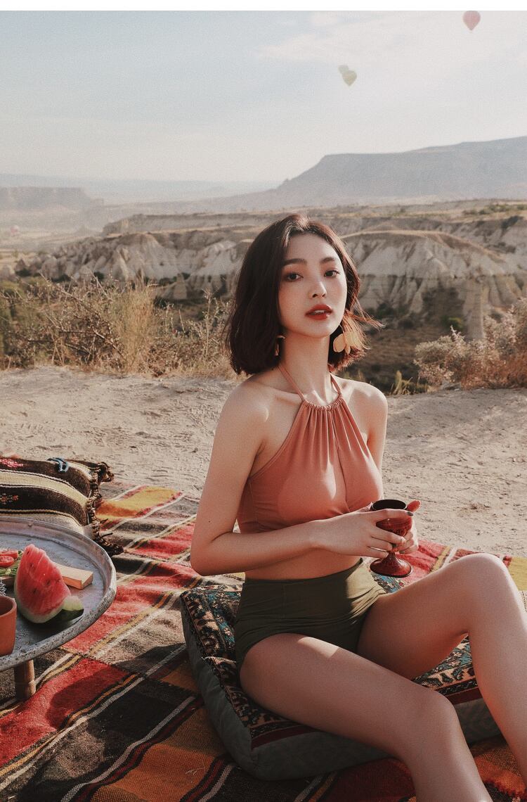 《入荷待ち》水着 スイムウェア ビキニ ホルターネック レトロ フロントクロス ハイウエストボトム 体型カバー シンプル 大人可愛い 夏