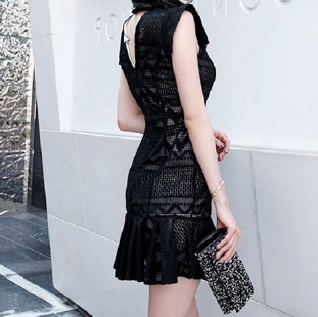 ワンピース お呼ばれ ディナー 食事会 女子会 結婚式 二次会 ノースリーブ 大人可愛い 透け感 大人可愛い フリル プリーツ メッシュ