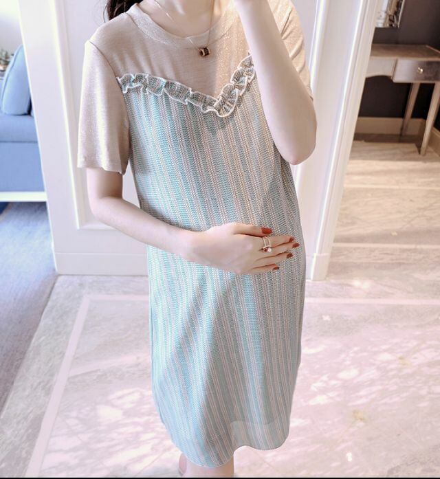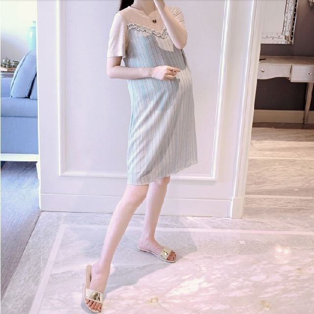 ストライプ柄 ワンピース 大きいサイズ お出掛け マタニティ 大人可愛い 膝丈 ガーリー