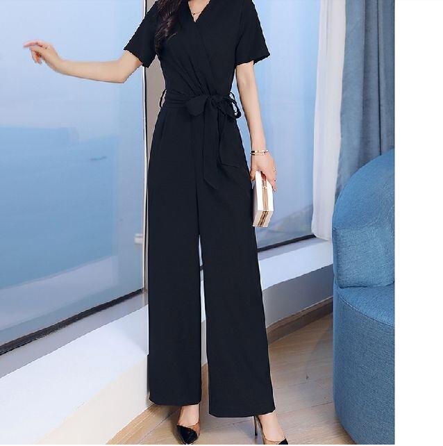 《入荷待ち》 ワイドレッグ パンツスーツ ハイウエスト オールインワン お出掛け 旅行 リゾート デート