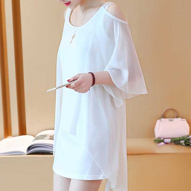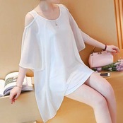 《再入荷》トップス チュニック丈 オープンショルダー シフォン ブラック ホワイト 大きいサイズ 大人可愛い こなれ感