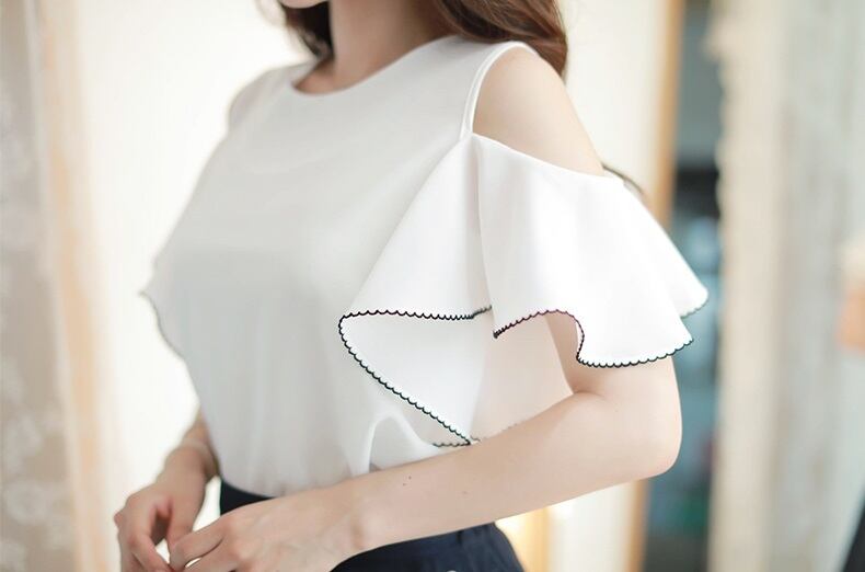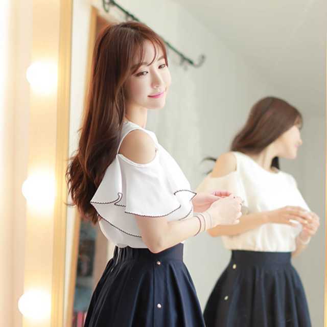 ≪入荷待ち≫ トップス オープンショルダーカットソー フリル ホワイト 大きいサイズ 大人可愛い フェミニン シンプル