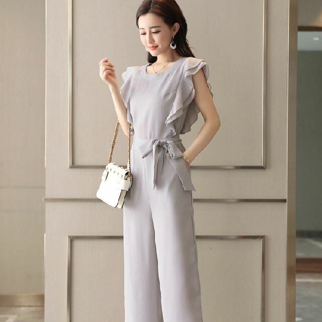 《入荷待ち》パンツドレス パンツスーツ シンプル キレイめ レディース フォーマル 結婚式 二次会 お呼ばれ ディナー フリル