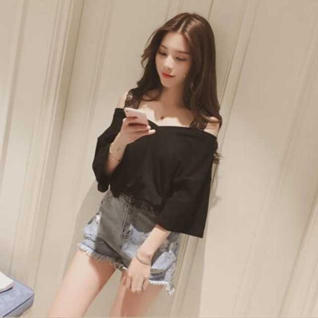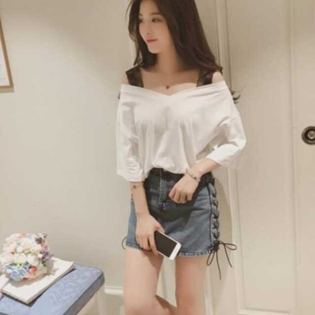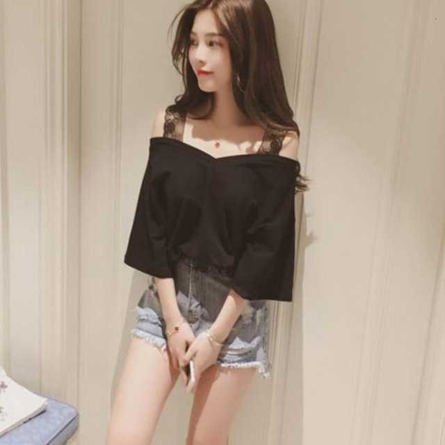 《再入荷》トップス オープンショルダーカットソー レース ブラック ホワイト 大人可愛い カジュアル フェミニン