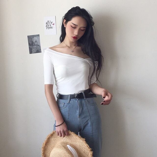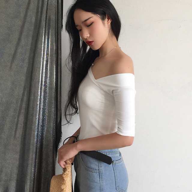 《入荷待ち》トップス プルオーバー カットソー ワンショルダー ホワイト ブラック 大人可愛い セクシー オフショルダー