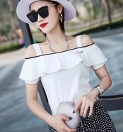 ≪入荷待ち≫ トップス オープンショルダーオフショルダー カットソー ボーダー ブラック ホワイト 大人可愛い カジュアル 春 夏