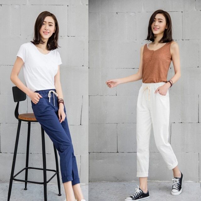 《入荷待ち》パンツ イージーパンツ ドロスト ウエストゴム 9分丈 ネイビー ホワイト ベージュ ブラック カジュアル シンプル