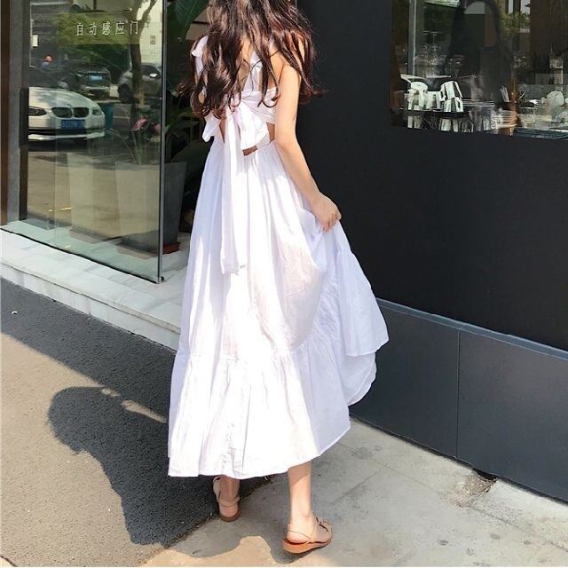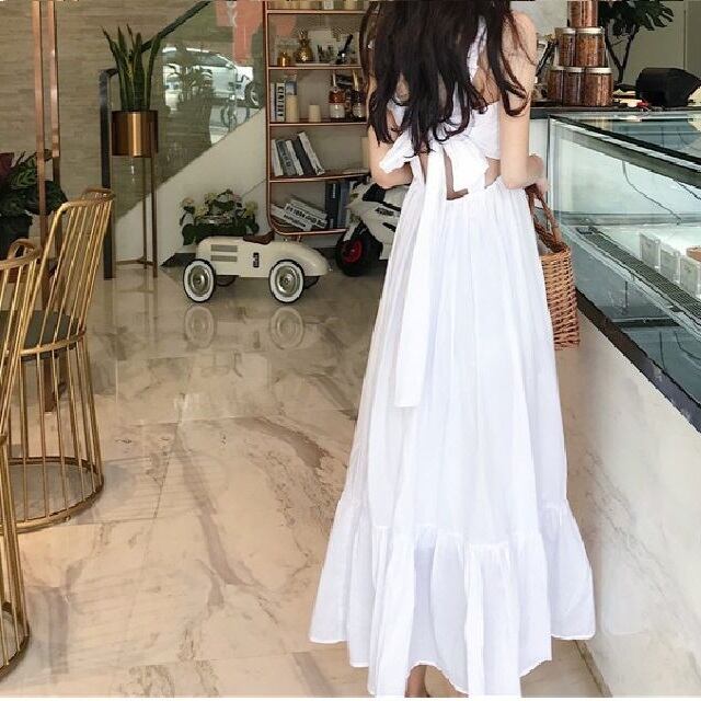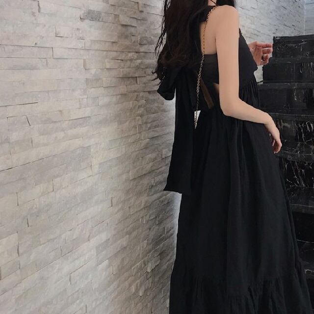 ワンピース フレア リゾート マキシ丈 バックリボン 春 夏 バックリボン ノースリーブ フリル ティアード ギャザー ガーリー フェミニン 大人カワイイ