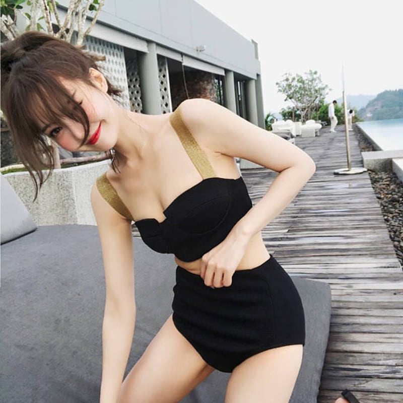 水着 ビキニ 大人可愛い ビーチ ブラック リゾート 夏 スイムウェア ハイウエストボトム トレンド シンプル