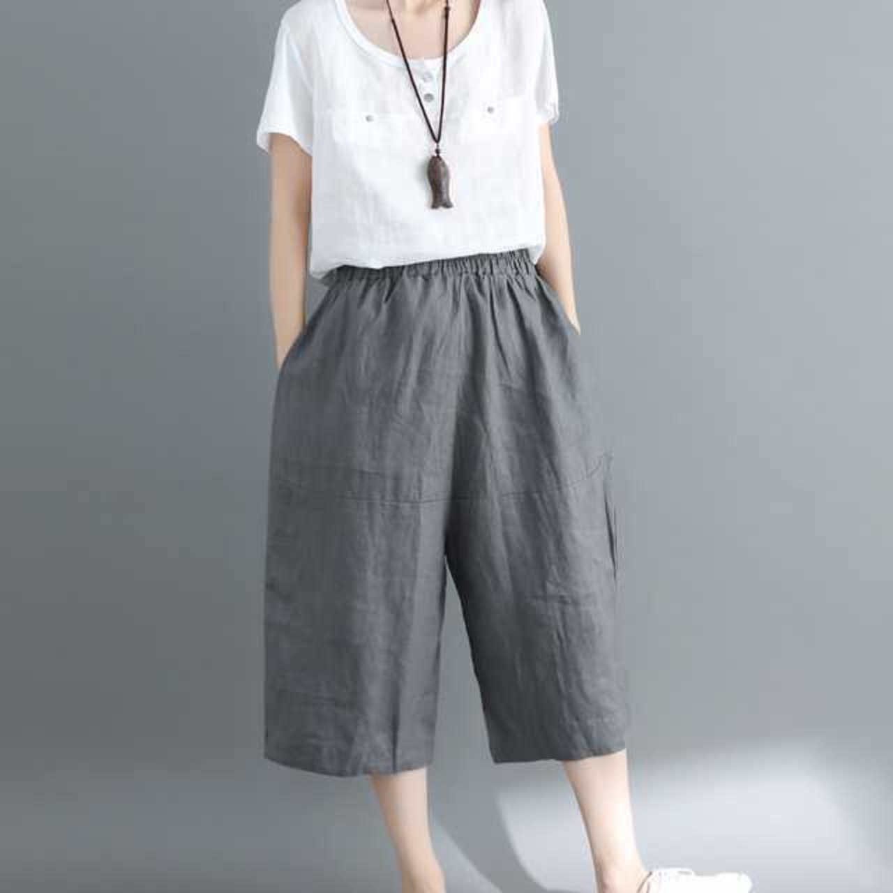 パンツ イージーワイドパンツ ウエストゴム ブラック ホワイト グレー 大きいサイズ カジュアル シンプル 春 夏