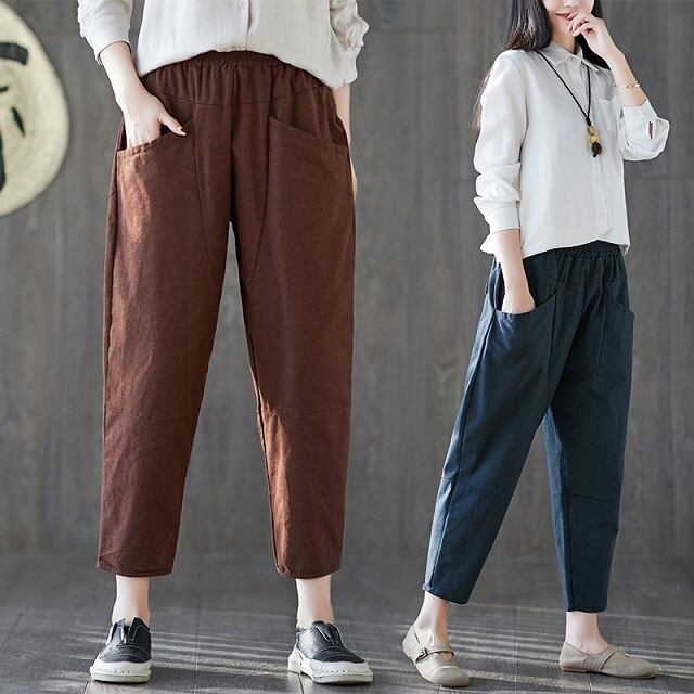 《入荷待ち》パンツ ベイカーパンツ ウエストゴム ブラウン ネイビー ブラック 大きいサイズ カジュアル シンプル