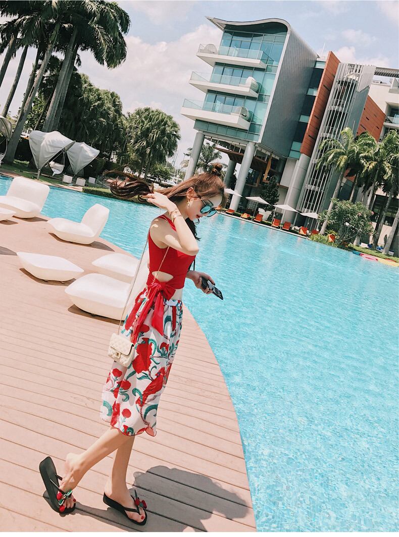 洋服感覚で着られるスイムウェアは日焼け対策バッチリ、