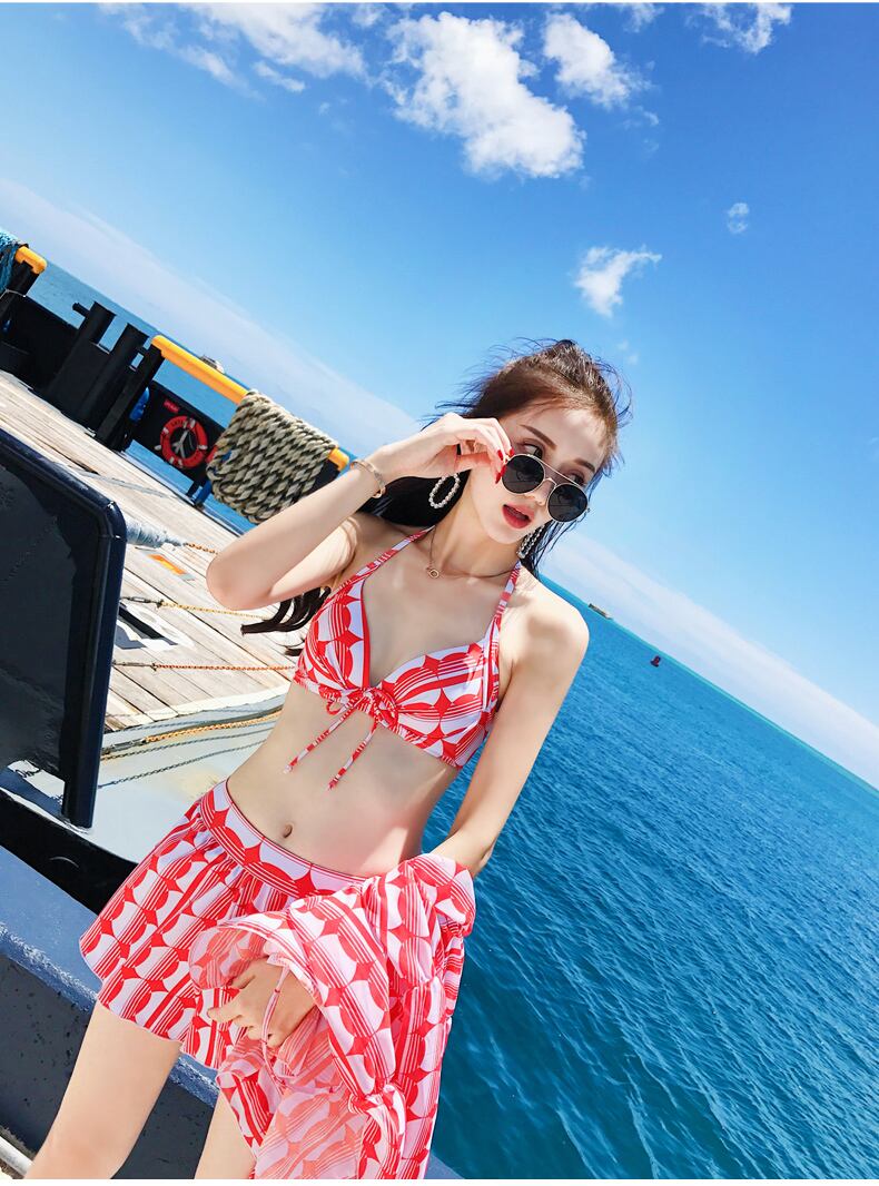 《入荷待ち》水着 ビキニ セパレート レディース スリーピース ブラウス かわいい レッド