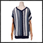 《再入荷》トップス ニットプルオーバー 半袖 ネイビー ブルー 大人可愛い カジュアル こなれ感 春 夏
