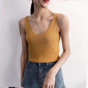 《入荷待ち》タンクトップ リブニット ピンク ブラック イエロー ホワイト 無地 大人可愛い シンプル 春 夏