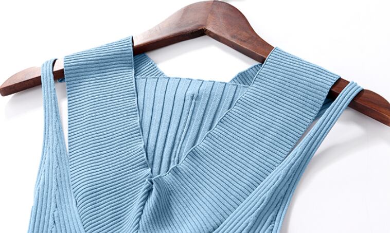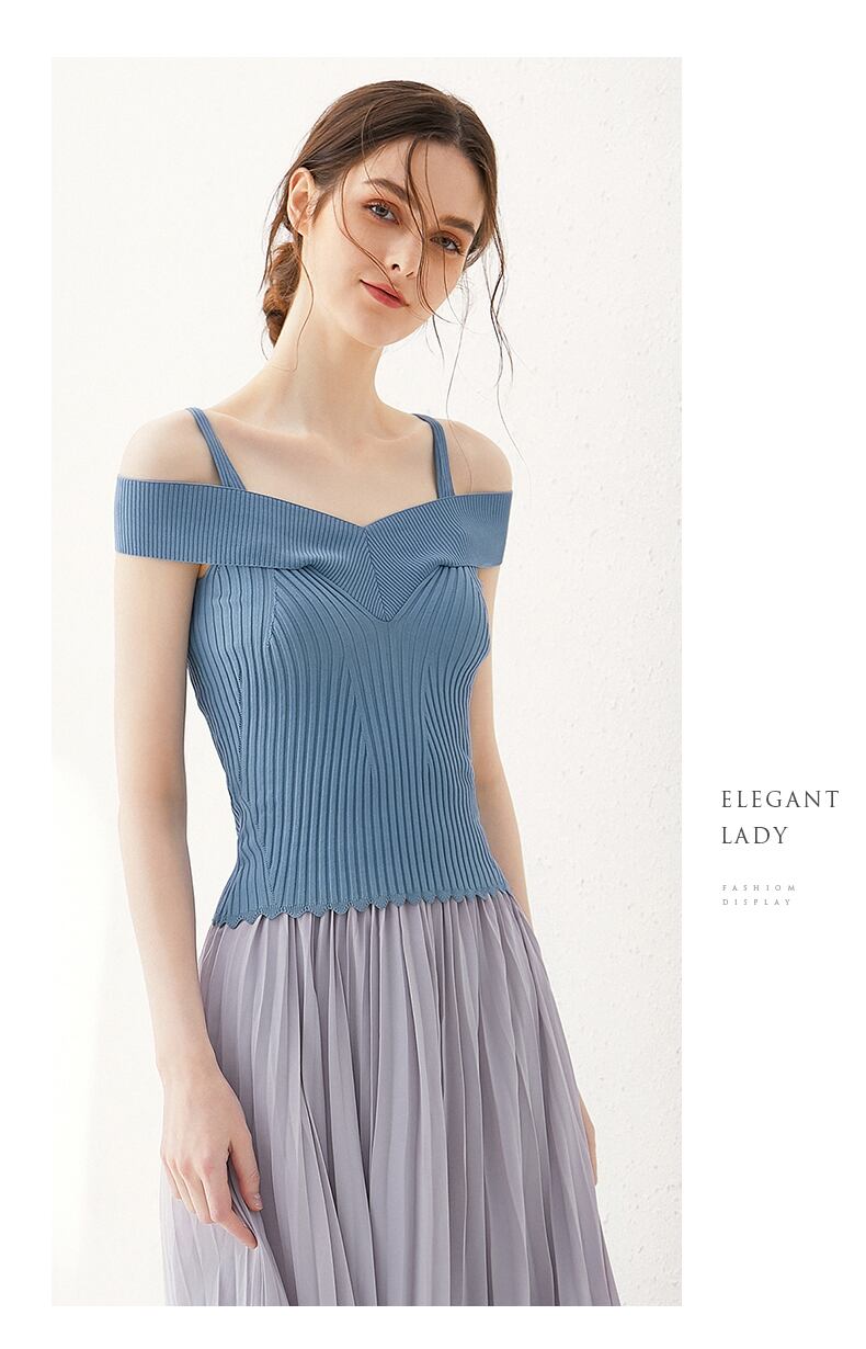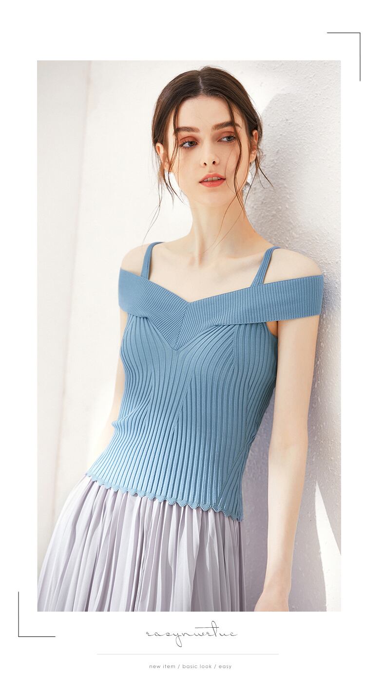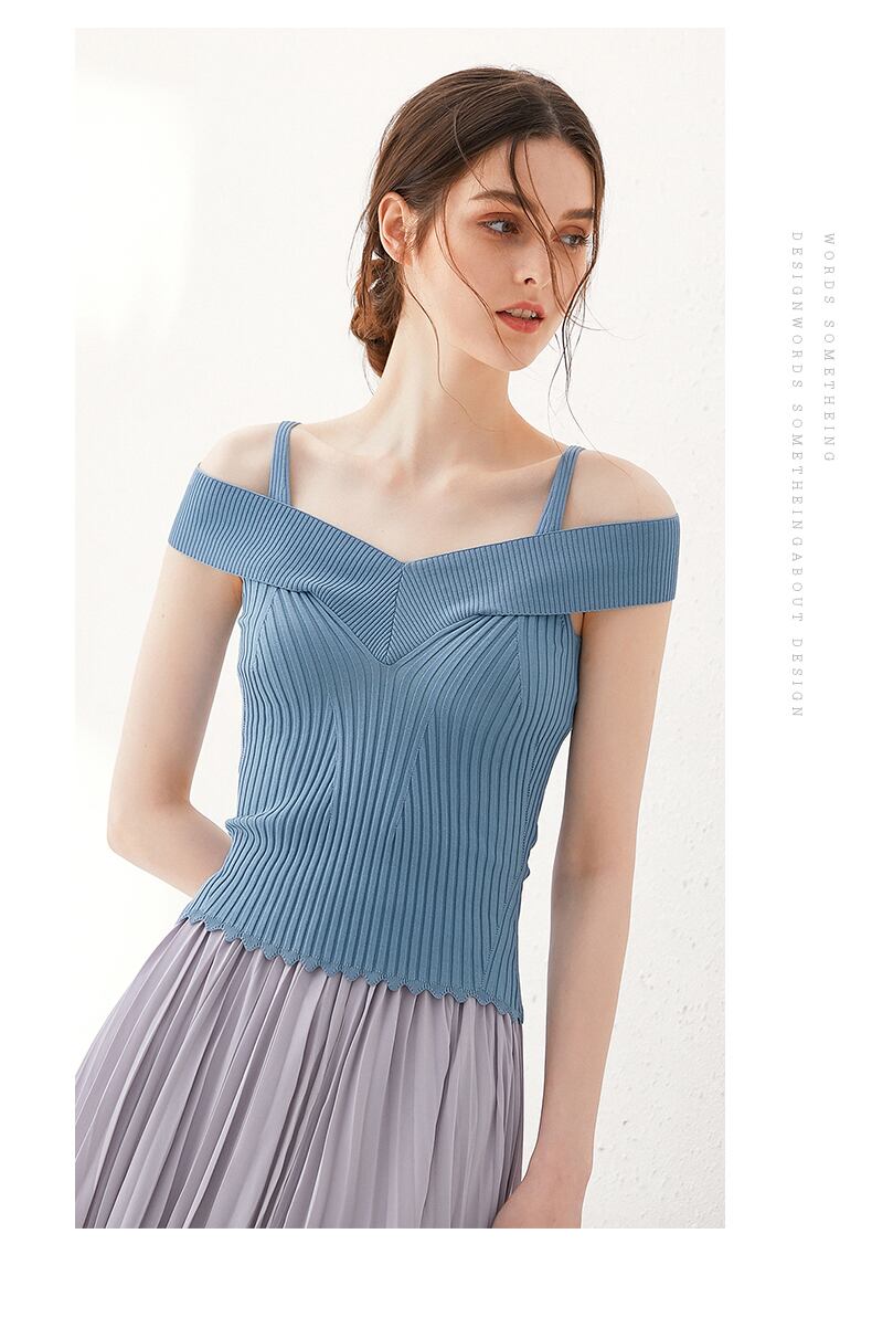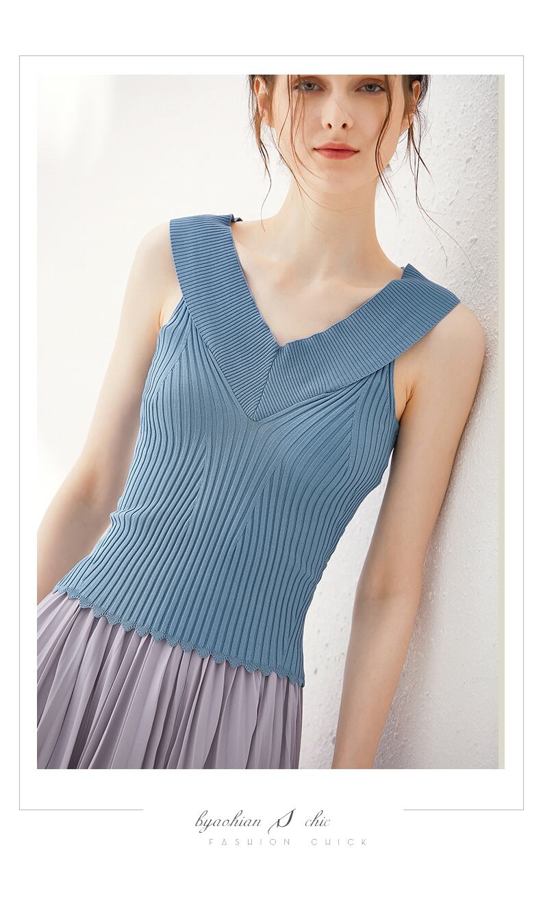 サマーニット トップス オフショルダー カットソー ノースリーブ リブニット 上品 エレガント Vネック